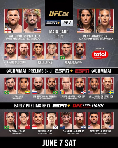 Here is the announced main card lineup for UFC 317:
